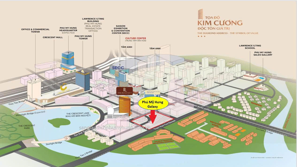The galaxy Phú Mỹ Hưng tọa lạc tại lô đất CR9 – vị trí được xem là “Trái tim của The Crescent”, nơi dòng chảy yên bình của Hồ Bán Nguyệt giao hòa cùng nhịp sống sôi động của trung tâm đô thị hiện đại. Đây là quỹ đất hiếm hoi hội tụ cả giá trị cảnh quan, tiện ích và khả năng kết nối xuất sắc.