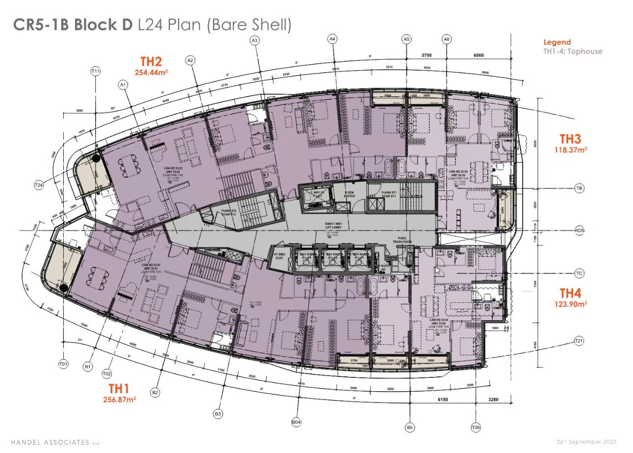Tầng 24: Penthouse lớn diện tích từ 255m2 – 259m2.